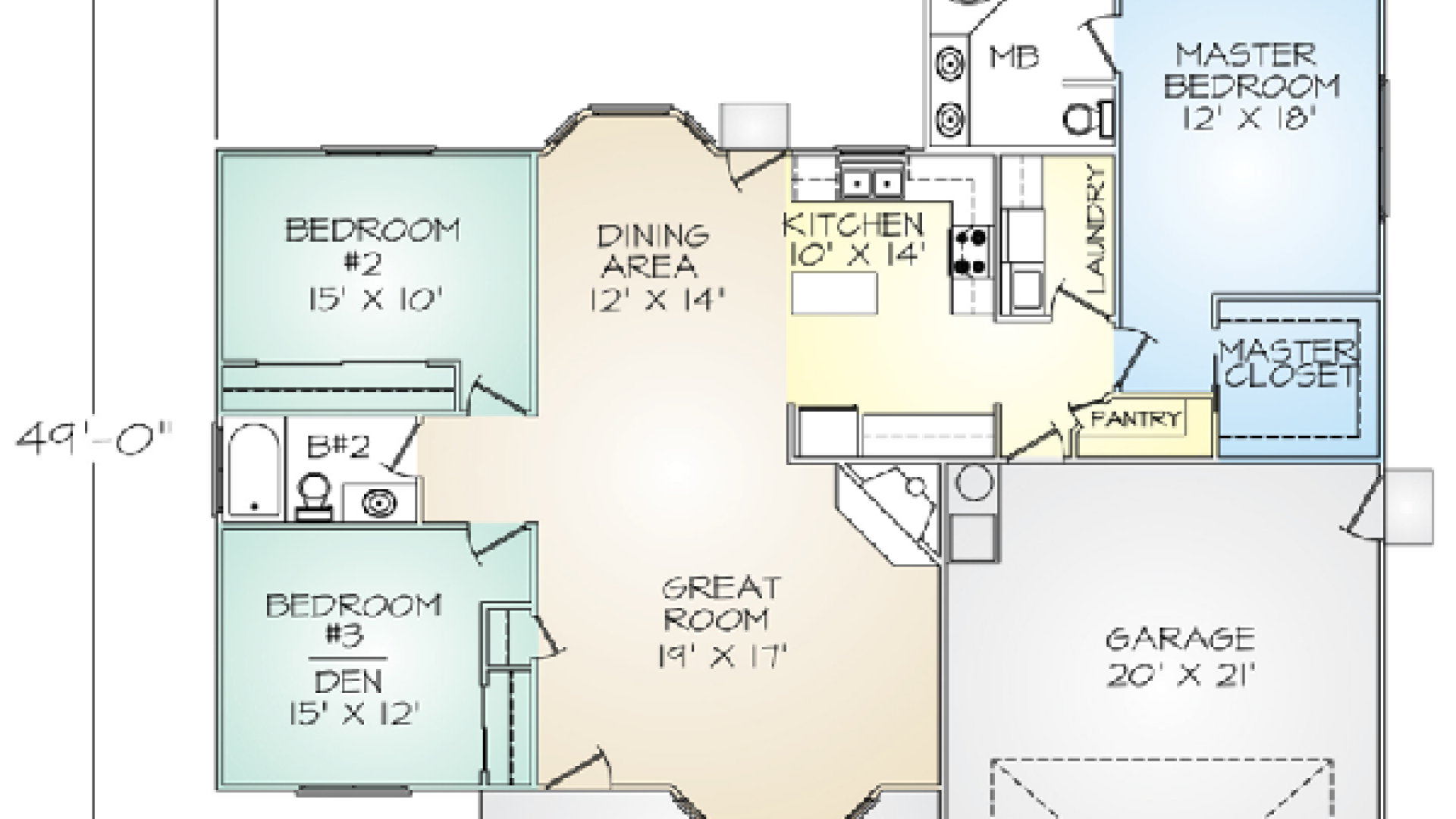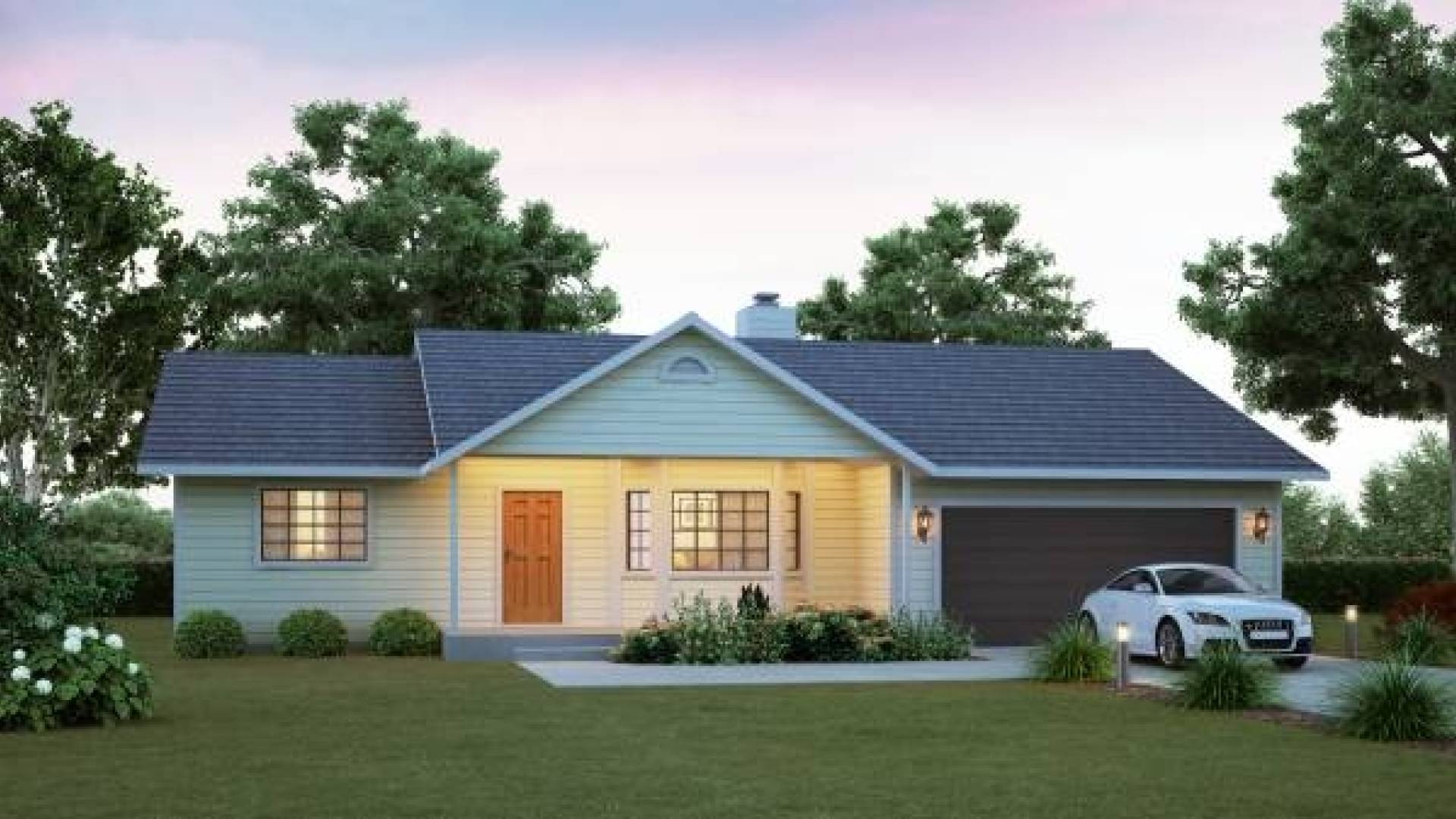 The Plymouth panelized kit home has been thoughtfully designed with an eye toward comfort. Located a few steps from the entryway, the great room provides a welcoming and convenient venue for entertaining. Another feature of this plan is that the family bedrooms are on the opposite side of the house from the master bedroom, creating a wonderful retreat environment. The master bedroom suite also offers a generously-sized master bath and walk-in closet.