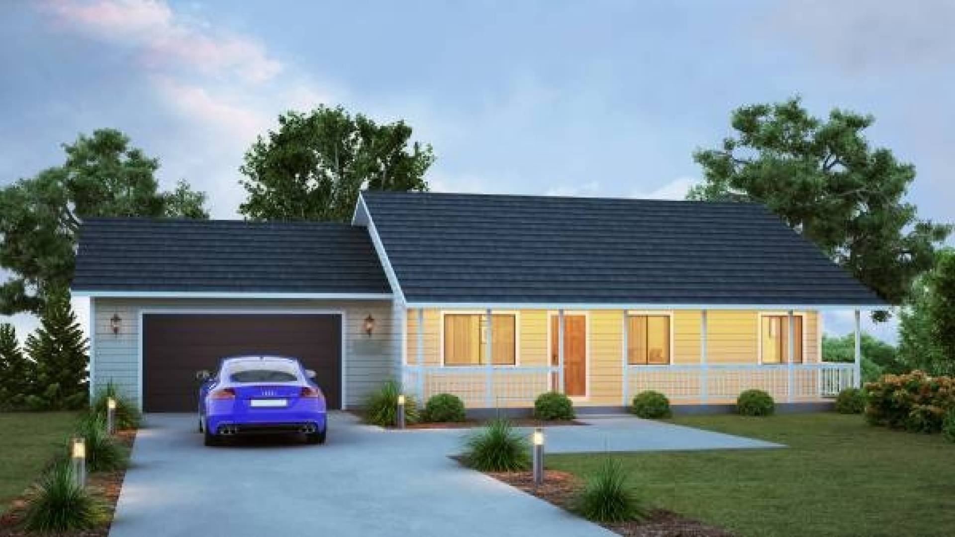The Lakeport panelized kit home is a charming one-story plan. The Lakeport has a covered front porch extends a warm invitation to enter, while a vaulted ceiling combines with the living room and dining room to afford a spacious living area. The master bedroom is designed with a private bath and a large walk-in closet. The oversize two-car garage provides a generous space for multiple vehicles.
