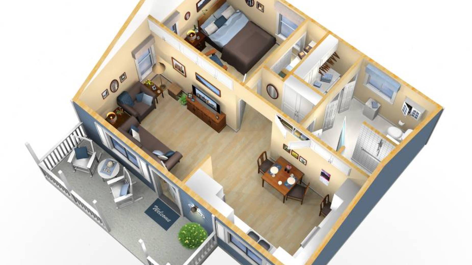 The Maywood makes small feel smart at 600 sq ft. Up front, a 108 sq ft covered porch is easy to screen for everyday outdoor lounging. Inside, the open living room and full-size kitchen share vaulted ceilings with space for storage cabinets above, plus a handy computer desk nook. The bedroom brings in natural light with two windows and a six foot wide closet. The spacious bathroom includes a walk in shower and a true full size laundry area. Aging in place is built in with a step less entry and 36 inch wide doors and hallways. Choose lap, stucco, or panel siding to match your property. Use it as an ADU granny flat or granny pod where allowed, and take advantage of fast panelized dry in so you can start finishes sooner.